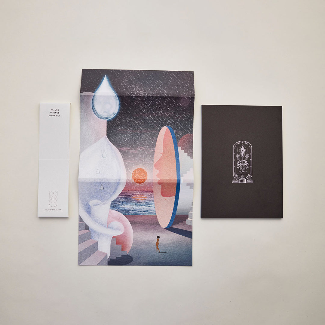 "Alchemy is the art of transforming the basic elements of our existence into a unified field that is aligned with nature and the cosmos. It is an incremental process of recalibration that supports and informs how we are able to digest our experiences and consciously navigate the future. We take up the macro-microcosmic vision of the Hermetic axiom ‘as above, so below’ – everything in the universe is interrelated; nothing exists in isolation. By observing this phenomenon, we are able to work towards diffusing the myth of separation. In this, our third edition of the journal, we continue to navigate the elements, moving beyond earth and fire to explore our relationship to water as a conduit for mediation and metamorphosis. Water can purify, pacify and sanctify, yet also drown and destroy, it gives life and it takes it away. Elemental water is the tides within, the ebb and flow of our internal fluids and our emotional body. In Jungian psychology, it guides our feeling selves, our sensitivity to our environment and