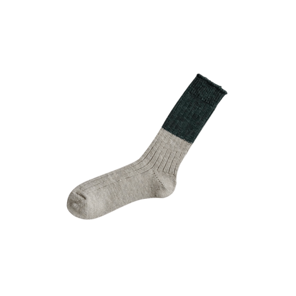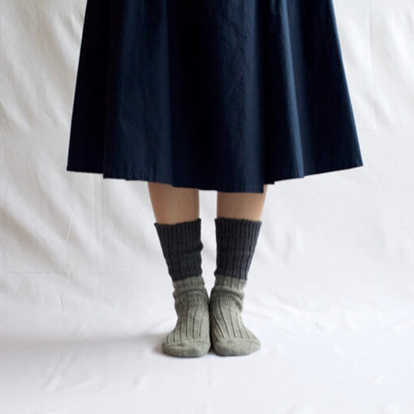 Wool and cotton are gently intertwined to create these wool-cotton socks. The vintage look and comfort maximizes with wear. These rib-patterned socks are created with wool and cotton that are gently twisted into slab style weaving. This type of weaving gives these socks a casual look and the gently intertwined yarn envelops your feet with softness and warmth. The vintage look and comfort maximizes with wear. Wool and cotton absorb the dye at different time frames. We like the variance of tones created by the dyeing process as it adds to this casual and playful look.