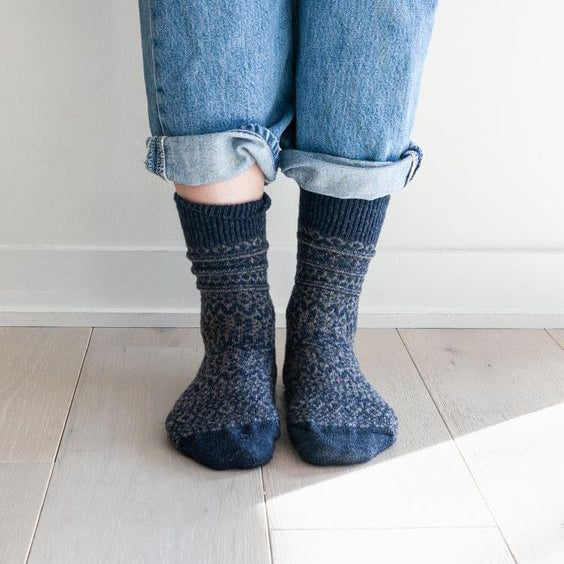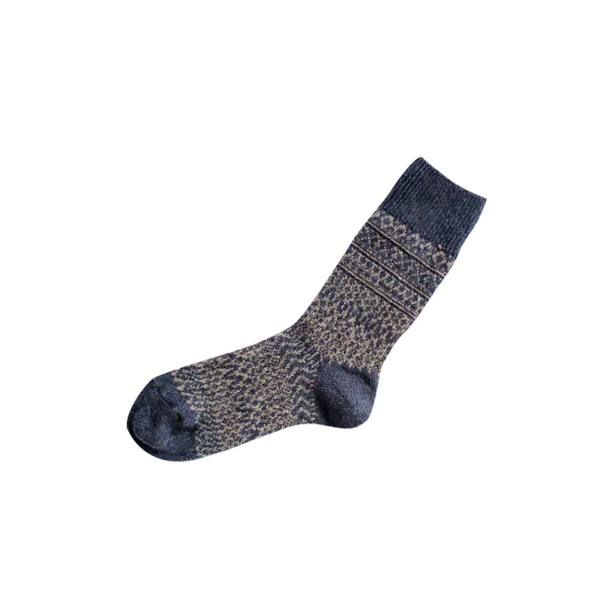 By repeatedly pre-washing the wool, we have developed a line of wool socks that are almost completely shrink-proof. Shrink-proof wool was selected to produce these Jacquard socks. This plush material has volume similar to pile — enveloping the feet in softness and warmth.