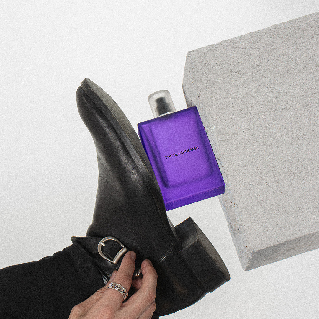 Blasphemer is an intoxicating, mystical and smoky fragrance with notes of oud wood and leather.